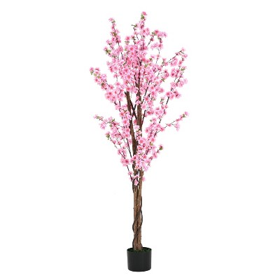 Gulches 6' Artificial Peach Blossom Tree - Pre-Potted in Black Plastic Pot, No Assembly Lifelike Faux Flower Tree for Home, 34x34x72'