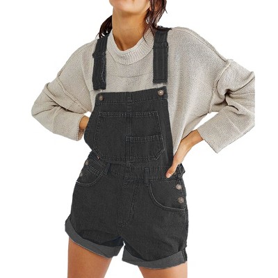 Clearlove Women's Maternity Jumpsuit Short Sleeve Overall Summer Casual Cross Back Crew Neck Control Rompers Loose Strap Overall Shorts