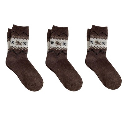 Anna-Kaci 3 Pairs Women's Mid-Calf Socks with Bow Pattern and Ruffled Cuff