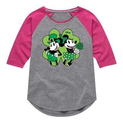 Girls' - Disney - Mickey Minnie Shamrock Shirt Tail Raglan Graphic T-shirt