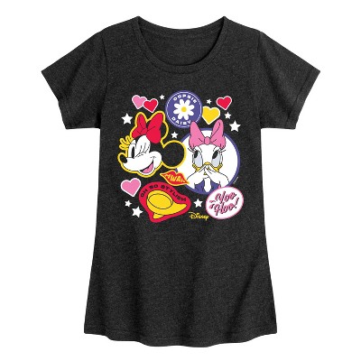 Girls' - Disney - Minnie And Daisy Sticker Look Fitted Short Sleeve Graphic T-Shirt