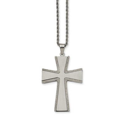 Black Bow Jewelry Stainless Steel Laser Cut Edge Cross Necklace - 24 Inch