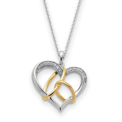 Black Bow Jewelry 16mm Diamond Open Heart Necklace in Rhodium Plated Silver, 18-20 Inch