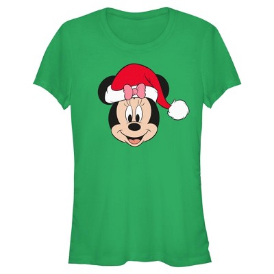 Juniors Womens Minnie Mouse Christmas Santa Hat Portrait T Shirt
