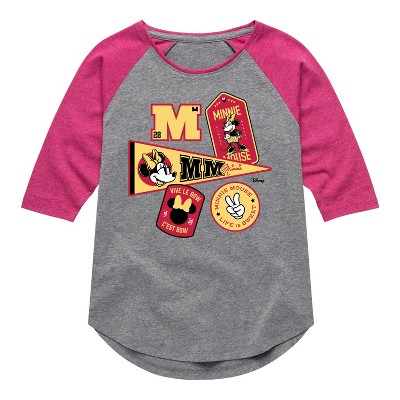Girls' - Disney - Vintage Minnie Mouse Shirt Tail Raglan Graphic T-shirt