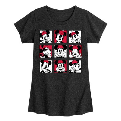 Girls' - Disney - Minnie Mouse Face Grid Fitted Short Sleeve Graphic T-Shirt