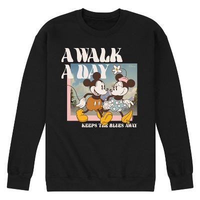 Men's - Disney - Mickey and Minnie Mouse A Walk A Day Keeps The Blues Away Graphic Fleece Sweatshirt