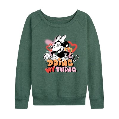 Women's - Disney - Minnie Mouse Lightweight French Terry Wide Neck Long Sleeve Graphic Shirt