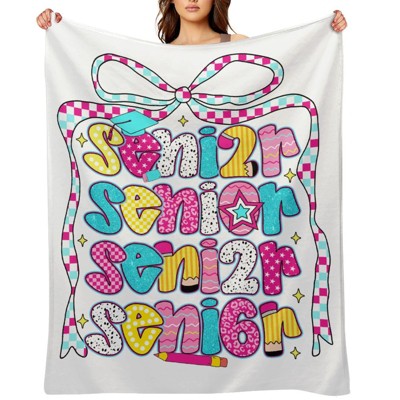 Soscooter 2026 Senior New Year Flannel Blanket Decorative Typography Pattern Soft Cozy Throw for Graduation Holiday Gift