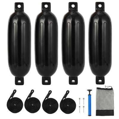 Garvee 4 Pack Boat Fenders for Docking, 16"/20"/23"/27" Inflatable Boat Bumpers with 4 Ropes, 1 Air Pump & 1 Storage Bag, Ideal for 10-35ft Boats