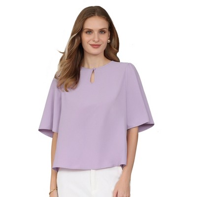 INSPIRE CHIC Women's Bell Elbow Sleeve Crew Neck Keyhole Front Solid Business Casual Blouse