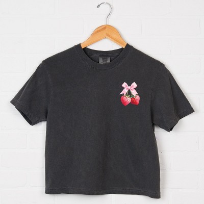 Simply Sage Market Coquette Strawberry Watercolor Boxy Crop Top