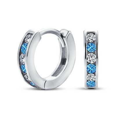 Bling Jewelry Delicate Tiny CZ Channel Set Huggie Hoop Earrings Sterling Silver