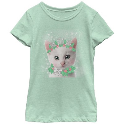 Girl's Lost Gods Christmas Cat Wreath T-Shirt