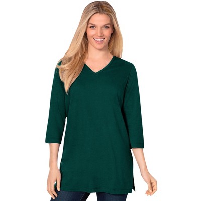 Woman Within Perfect Three-Quarter Sleeve V-Neck Tunic