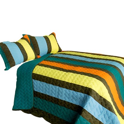 Slickblue 3 Piece Full/Queen, Soft Vermicelli Quilted Quilt and Shams, Quilt Set, Vertical Stripes, 9 Options