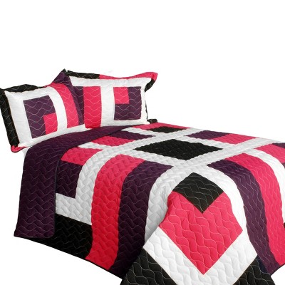Slickblue Full/Queen Size Quilt Set with Shams, Reversible Vermicelli Quilted, 6 Color Choices, 3 Piece
