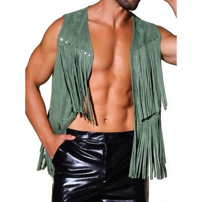 INSPIRE CHIC Men's Open Front Sleeveless Western 70s Suede Tassel Cardigan