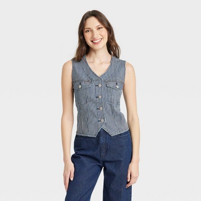 INSPIRE CHIC Women's Backless Denim Self-Tie Halter Neck Vest