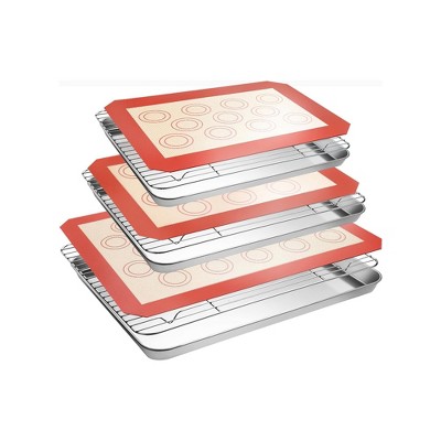 Itopfox Stainless Steel Baking Sheet Set with Cooling Racks & Silicone Mats, 9-Piece Oven Cookie Pan Kit for Easy Cleaning & Versatile Baking Needs