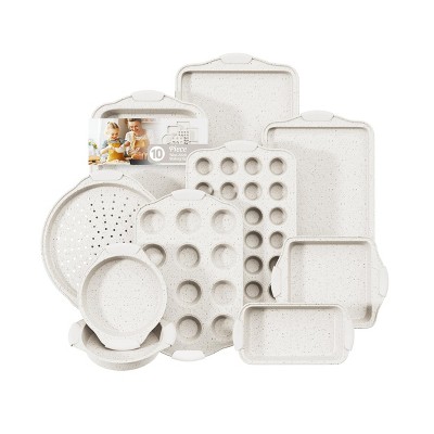 Itopfox 10-Piece Nonstick Bakeware Set with Silicone Handles, Includes Cookie Sheets, Cake Pan, Loaf Pan, Pizza Pan, Muffin Pan, White