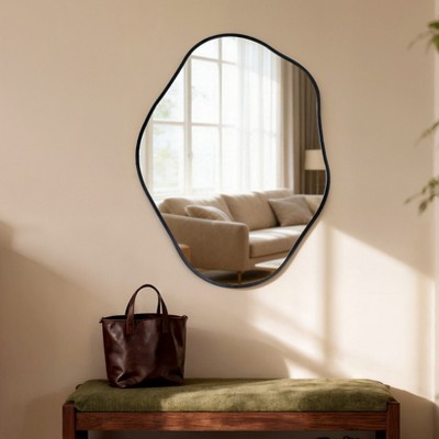 ARTLOGE 24x32in Asymmetrical Black Aluminum Framed Irregular Wall Mirror – Modern Abstract Decorative Mirror