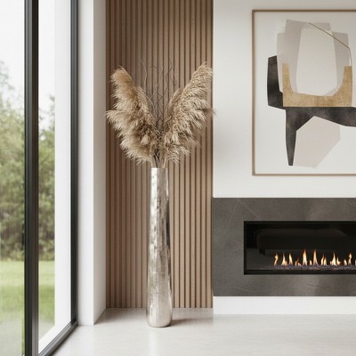 HomeRoots 32" Aluminum Silver Twigs Cylinder Floor Vase