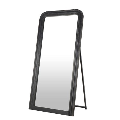 Olivia & May Mango Wood Distressed Room Floor Mirror with Carved Grooves Black