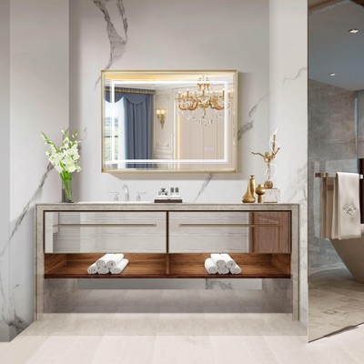 60"x40" Modern Black Frame?Bathroom Mirror:?Oversized, Aluminum, Wall Mounted, Vertical/Horizontal