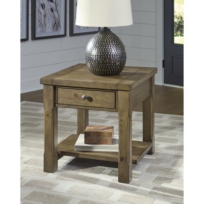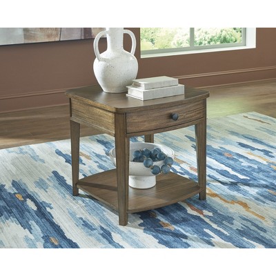 Signature Design by Ashley Burkbyer Rectangular End Table with Drawer and Lower Shelf, Brown Finish