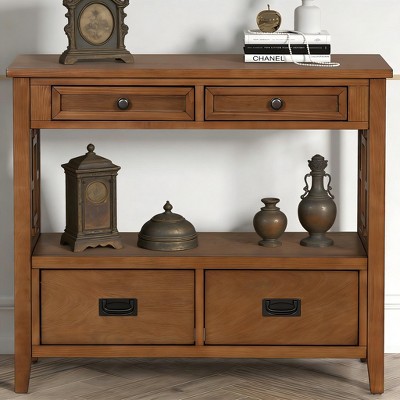 JVNOXK 36'' Farmhouse Pine Wood Console Table Entry Sofa Table with 4 Drawers & 1 Storage Shelf for Entryway Living Room Bedroom Hallway,Brown
