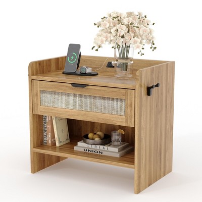 - mirror and wood bedside table