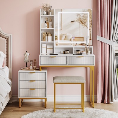 mirrored makeup vanity with drawers
