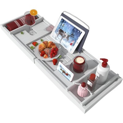 Dcolora Bathtub Tray Caddy,Expandable Bamboo Bathtub Caddy