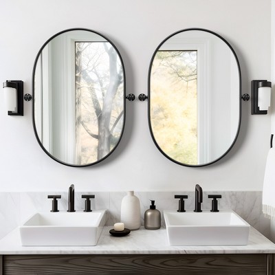 Spassway Modern Decorative Oval Bathroom Mirror Adjustable Bracket Vanity Mirror Metal Frame Mirror Wall Mounted Mirror for Bathroom Living Room