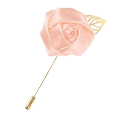 Unique Bargains Wedding Groom Suit Ribbon Rose Flower Lapel Pin with Gold Leaf 1 Pc
