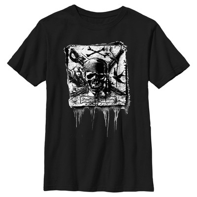Boy's Pirates of the Caribbean: Curse of the Black Pearl Black and White Skull Logo T-Shirt