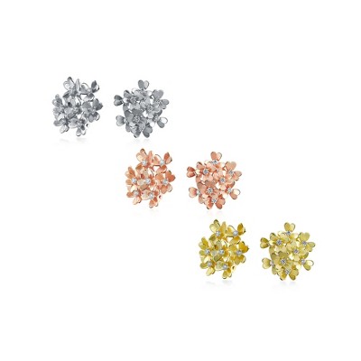 Bling Jewelry Set of 3 Floral CZ Bouquet Flower Clip-On Earrings for Non-Pierced Rose Gold Silver Plated
