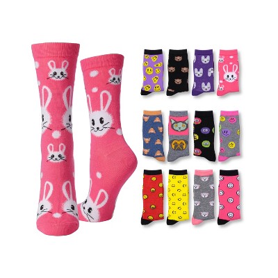 Tipi Toe Women's 12 Pairs Cheerful Cute Emojis Animal Faces Colorful Patterned Lightweight Crew Socks