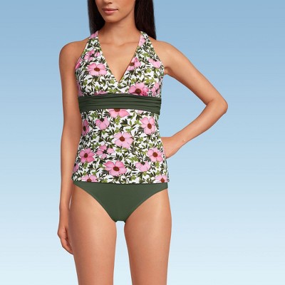 Lands' End Women's Floral Print Adjustable Midkini Bikini Top - Multi