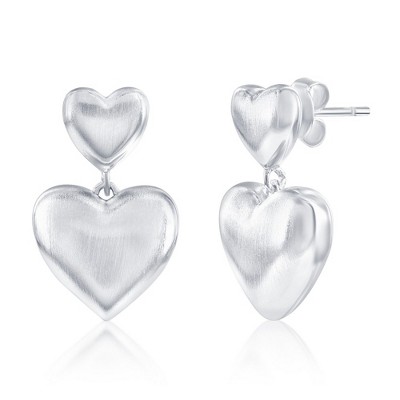 Bella Silver Sterling Silver, Double Heart, Matte Puffed Earrings - Silver