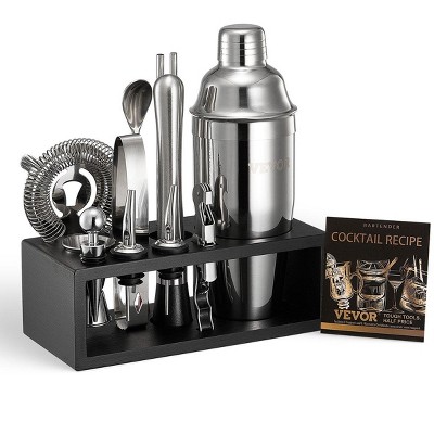 VEVOR Cocktail Shaker Set 13 Piece, Stainless Steel Bar Tools with Bamboo Stand, Martini Bartender Kit with Spoon Jigger Strainer, Silver
