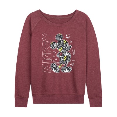 Women's - Disney - Mickey Mouse California Lightweight French Terry Wide Neck Long Sleeve Graphic Shirt