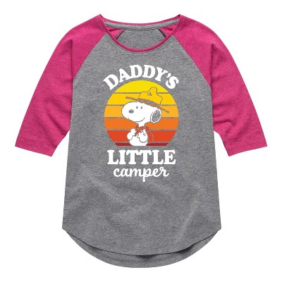 Girls' - Peanuts - Daddy's Little Camper Shirt Tail Raglan Graphic T-shirt