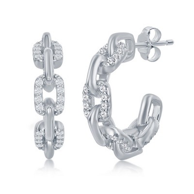 Bella Silver Sterling Silver 18mm CZ Paperclip Open Hoop Earrings - Silver