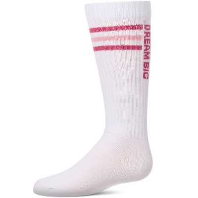 Memoi Girls "Dream Big" Triple-Stripe Cotton-Blend Ribbed Varsity Knee Sock