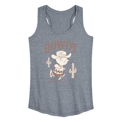 Women's - Peanuts - Howdy Charlie Brown-Women's Graphic Racerback Tank Top Graphic Racerback Tank