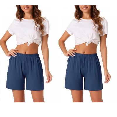 cheibear Women's 2 Pack Modal Soft Pajama Bottoms Comfy High Elastic Shorts with Pockets