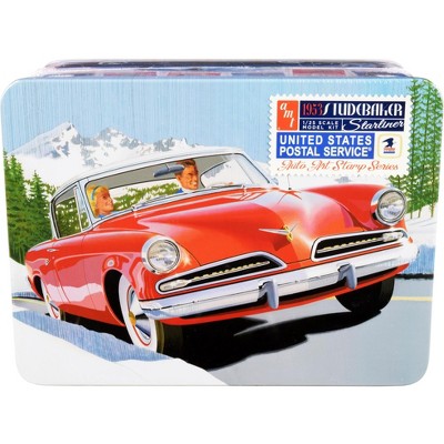 Skill 2 Model Kit 1953 Studebaker Starliner with "USPS" Themed Collectible Tin Box 3-In-1 Kit 1/25 Scale Model by AMT