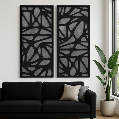 Dimensional Abstract Wall Art for Home Decor - Modern Wall Textured Panels for Living Room, Dining Room, or Entryway Decor - Set of 2, 59", Black